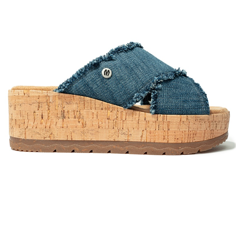 Elevate your warm weather wardrobe with these adorable slip on sandals. Featuring a comfy, frayed fabric crossband and a trendy wedge bottom, these statement platform slides are the perfect complement to your sunny day ensemble.
